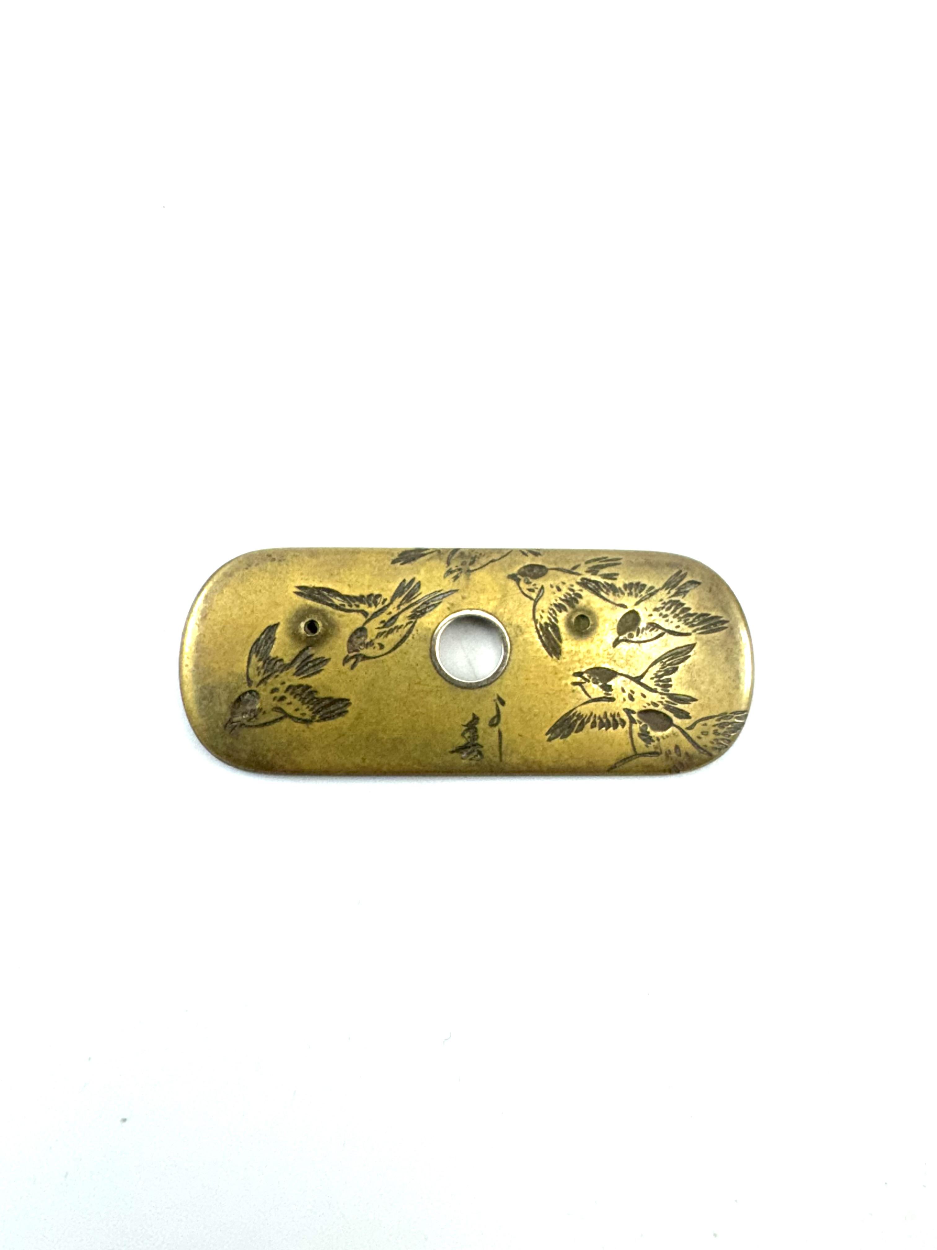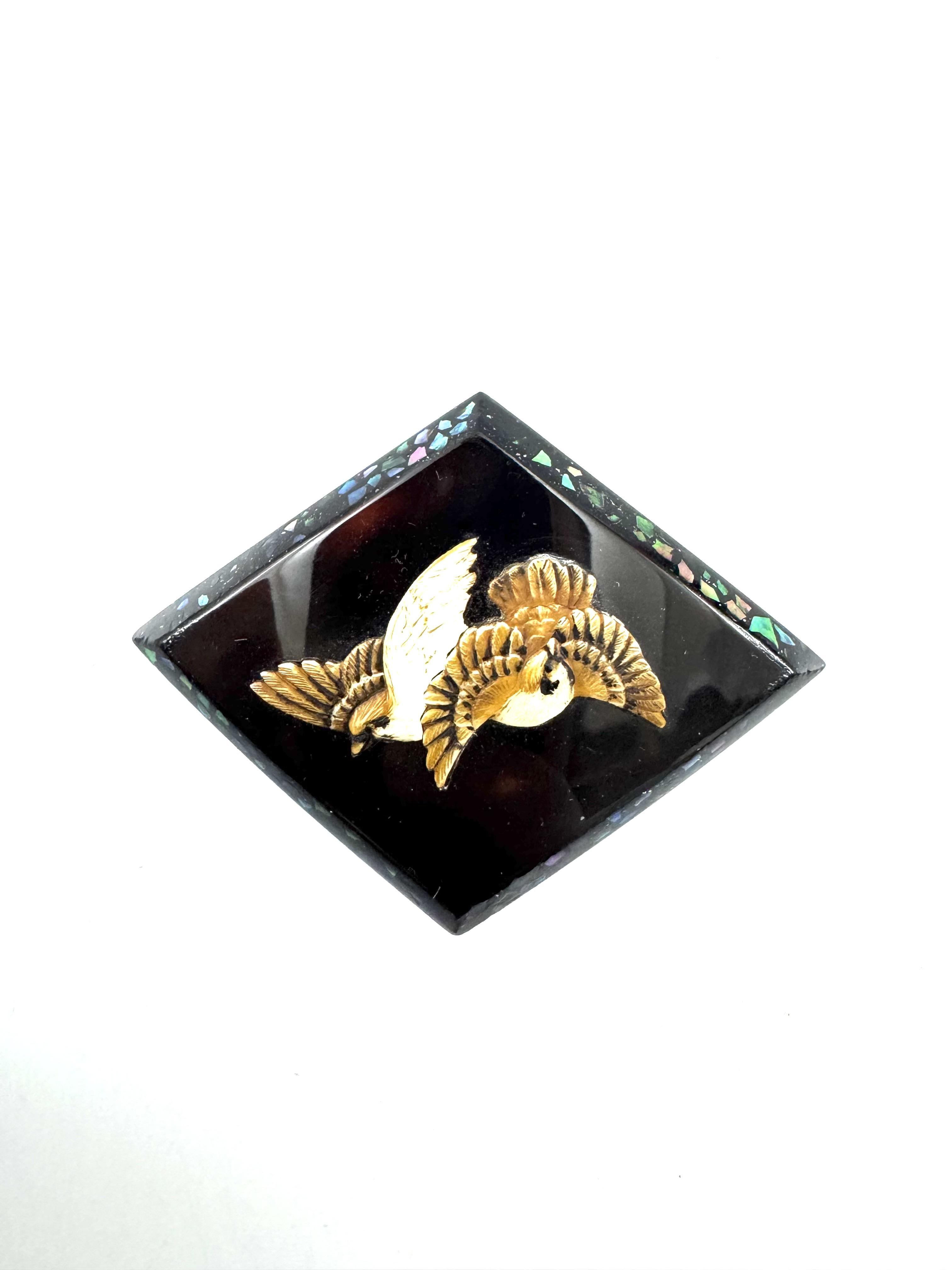 作品名:鼈甲 芝山象嵌 竹ニ雀文 帯留
